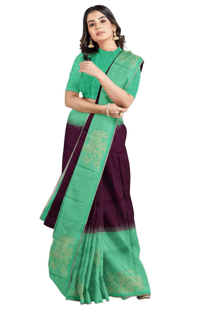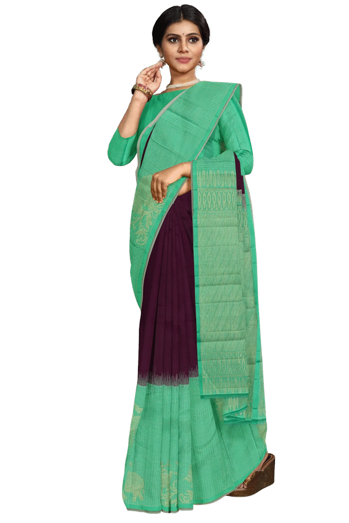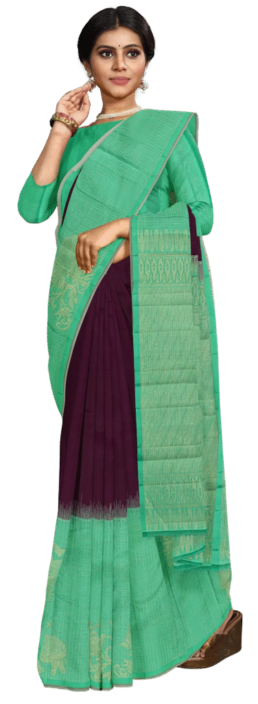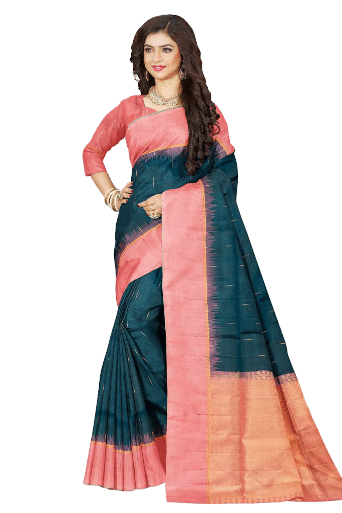 Earth and Aqua Elegance Handwoven Saree