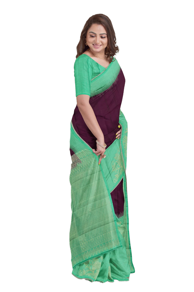 Classic Maroon and Olive Handwoven Saree
