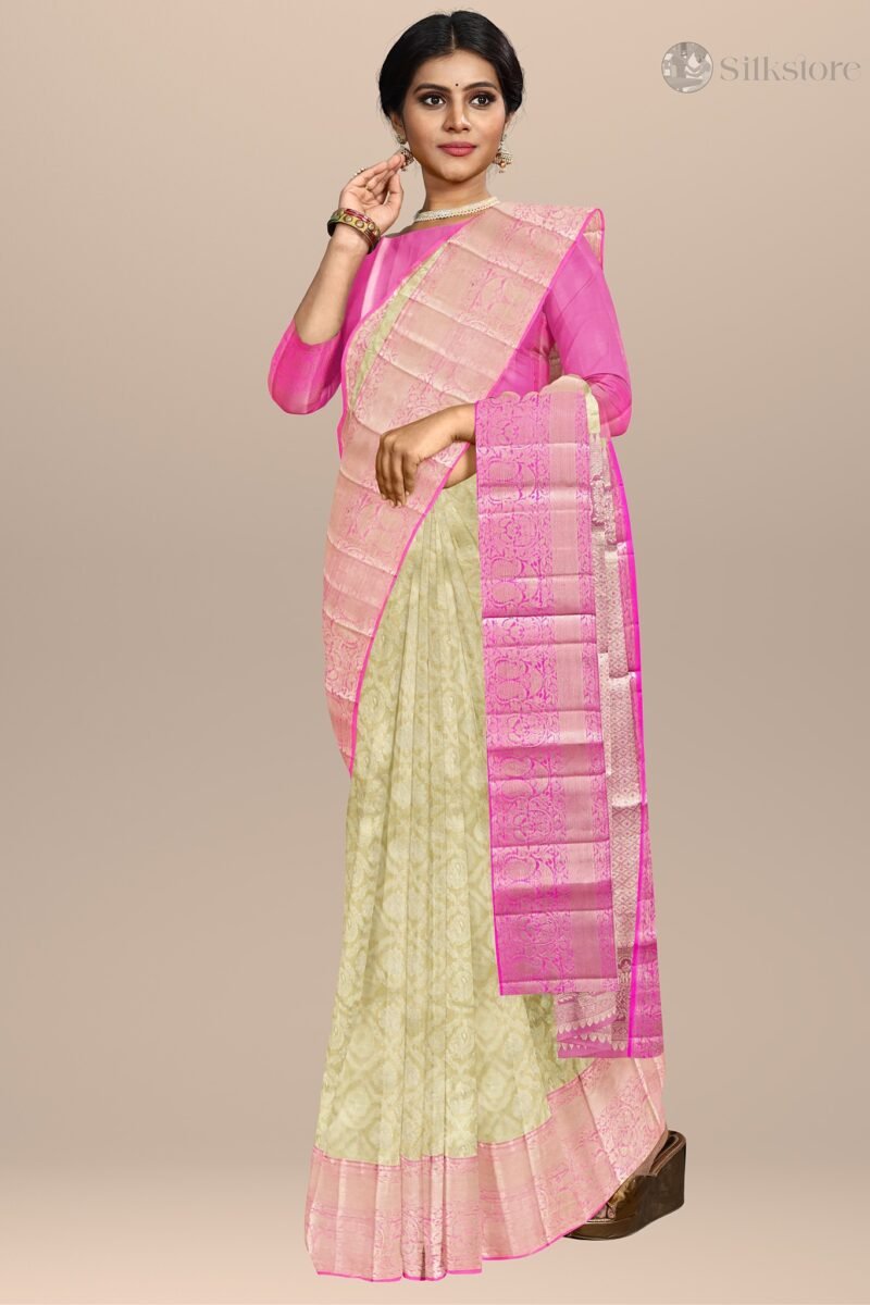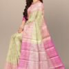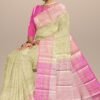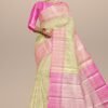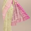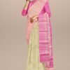 Blush Elegance – Warm White Saree with Pink Silk Border & Pallu