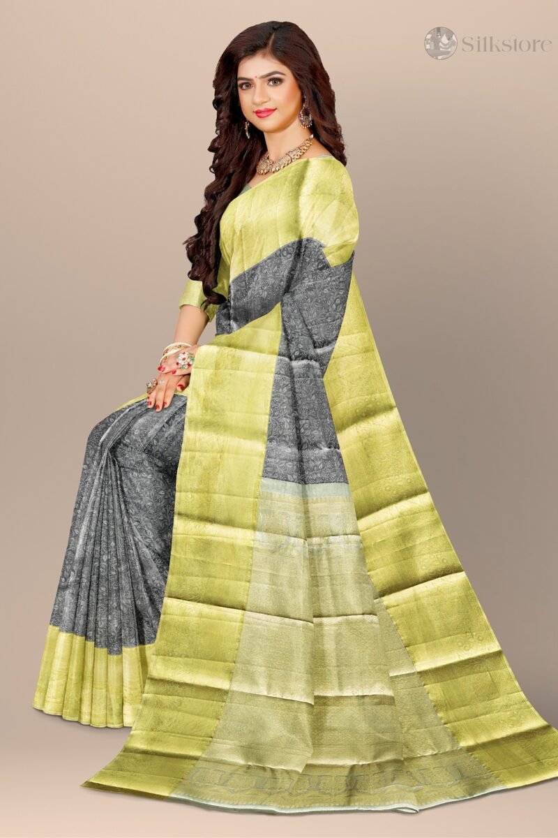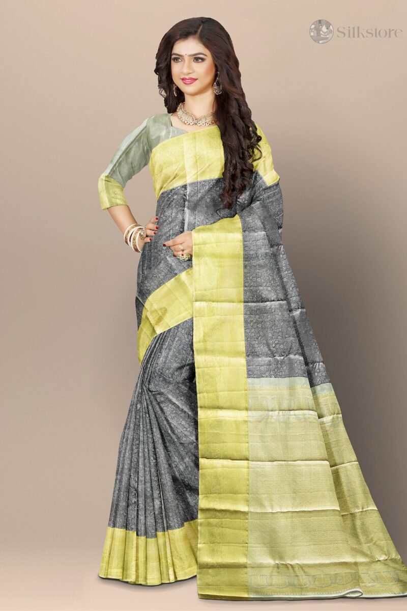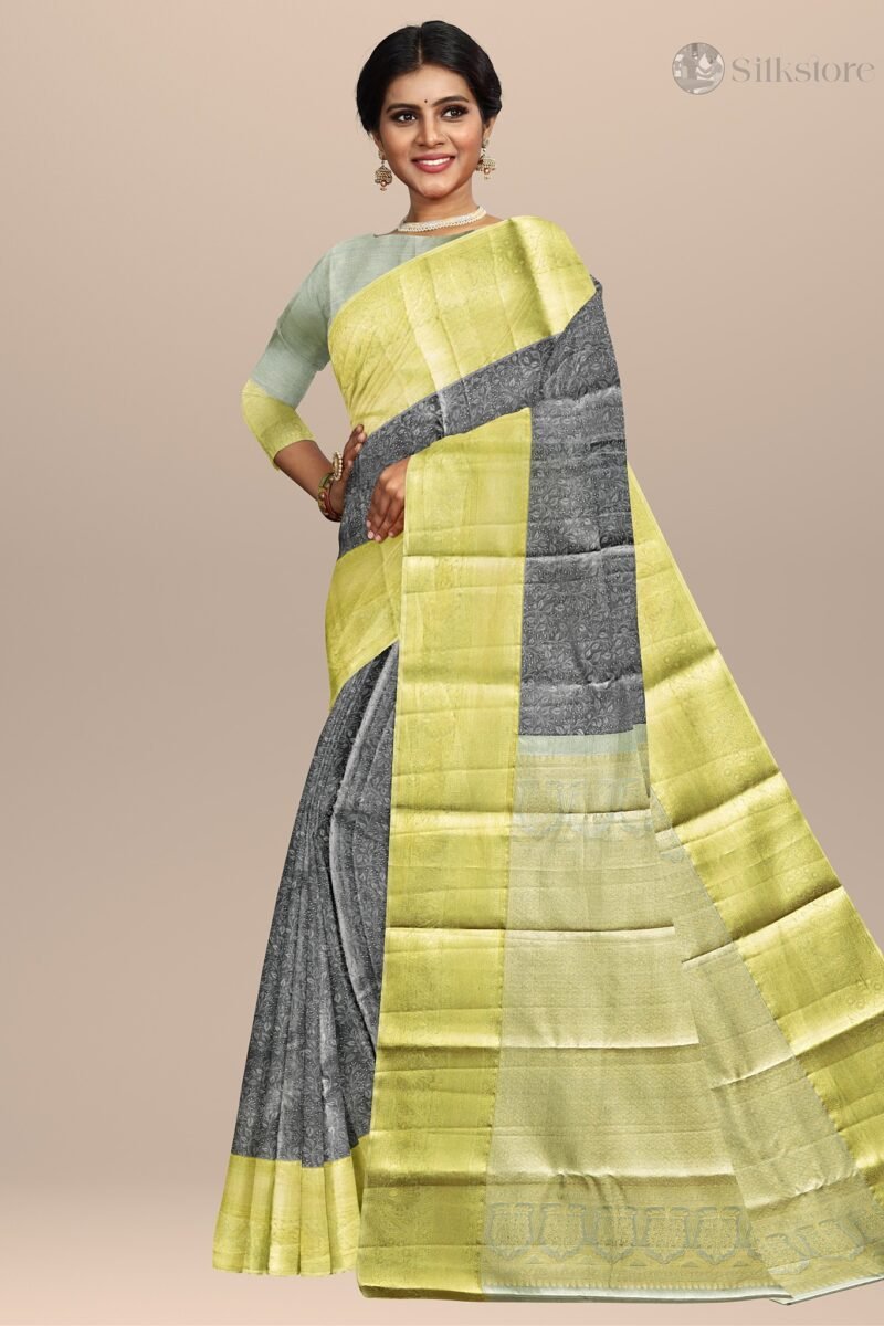 Charcoal Olive Luxe kanjivaram Silk Saree