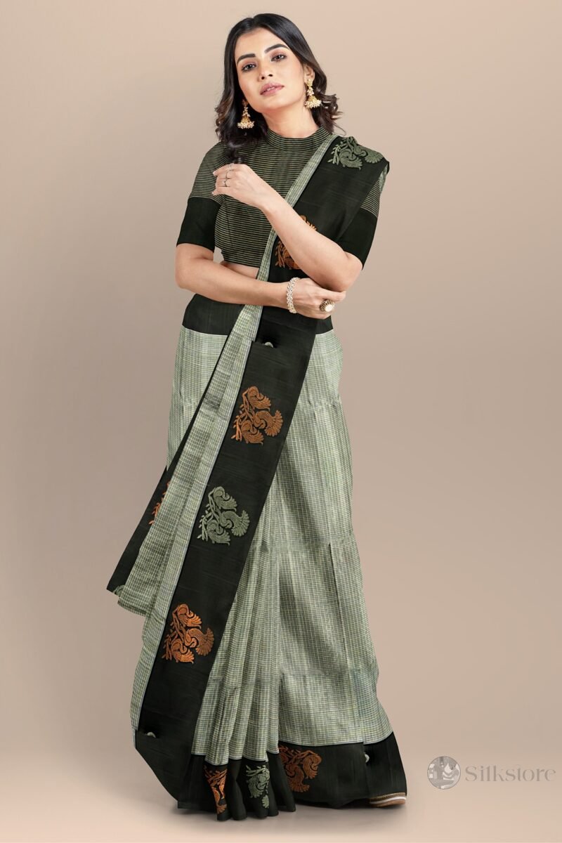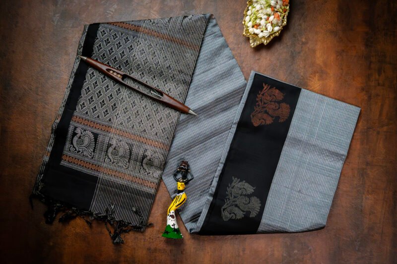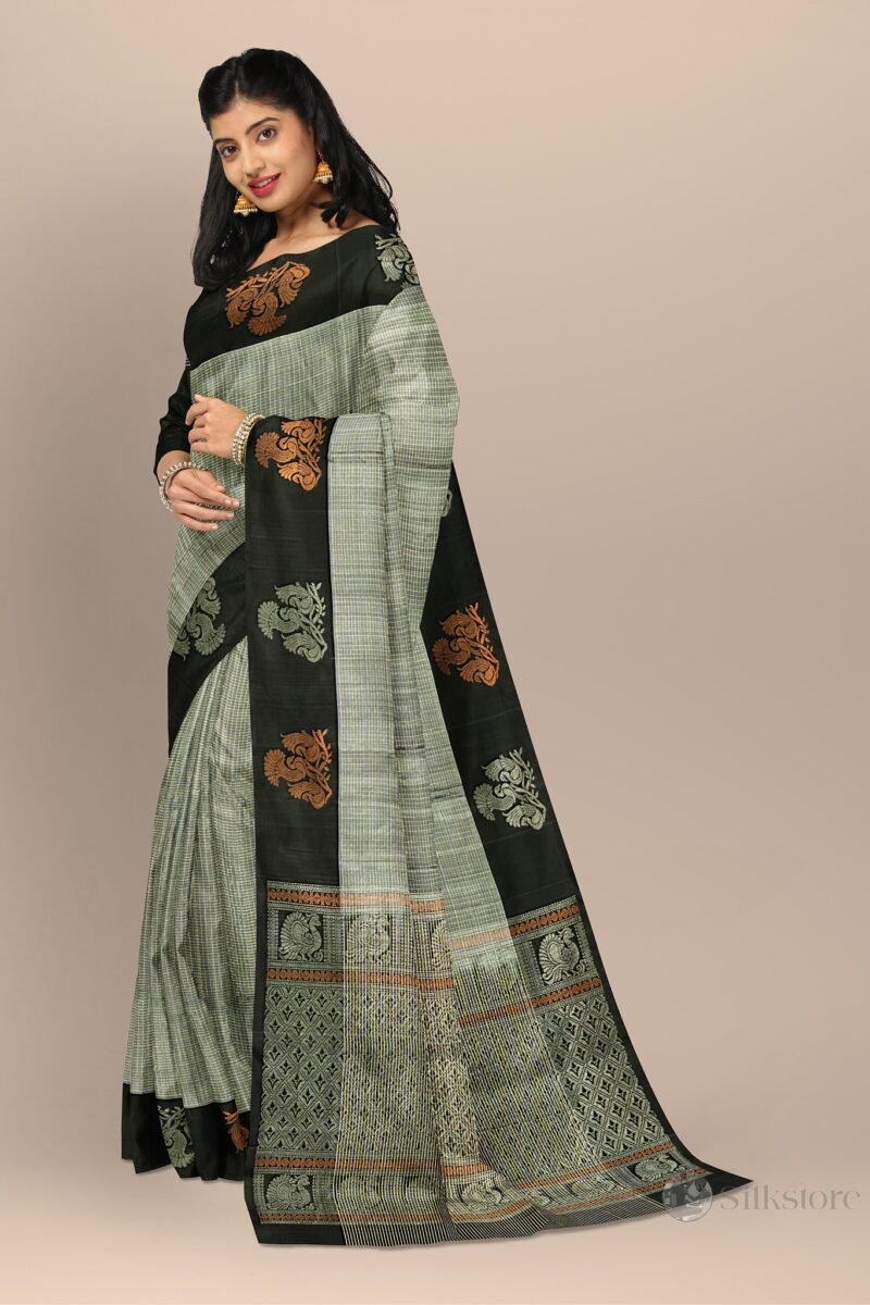 Elegant Black and Grey Silk Saree