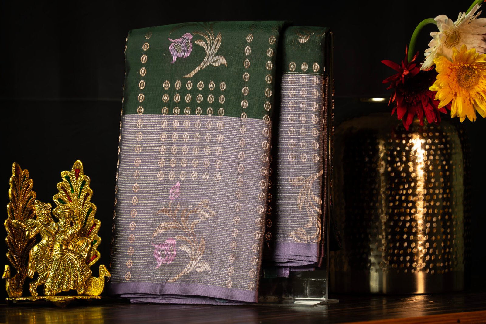 Graceful Green and Lavender Kanjivaram Handwoven Saree