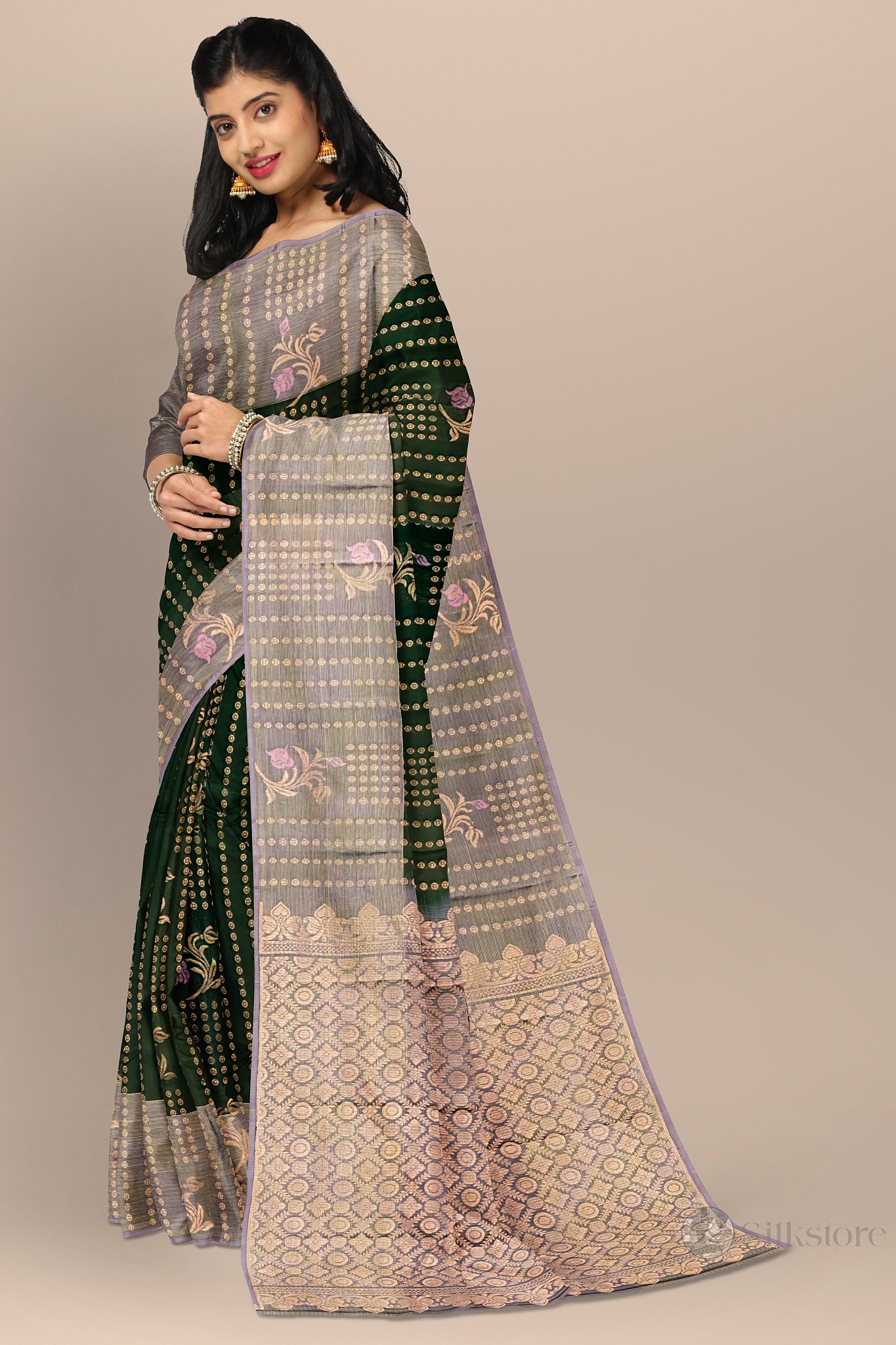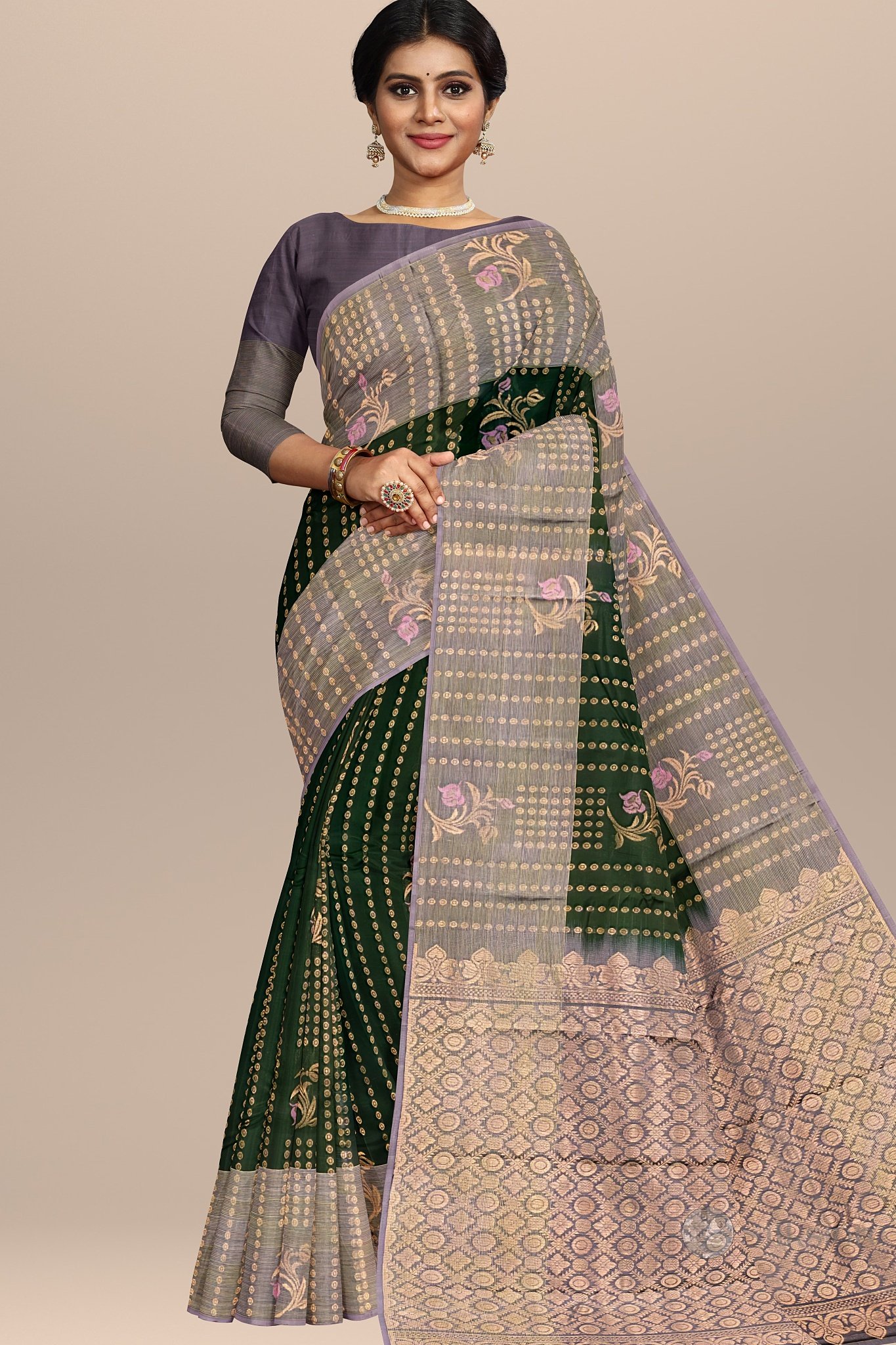 Graceful Green and Lavender Kanjivaram Handwoven SareeGraceful Green and Lavender Kanjivaram Handwoven Saree