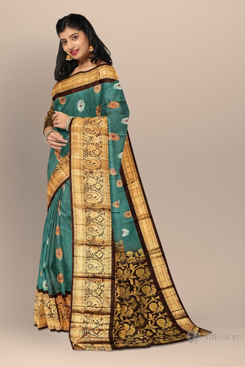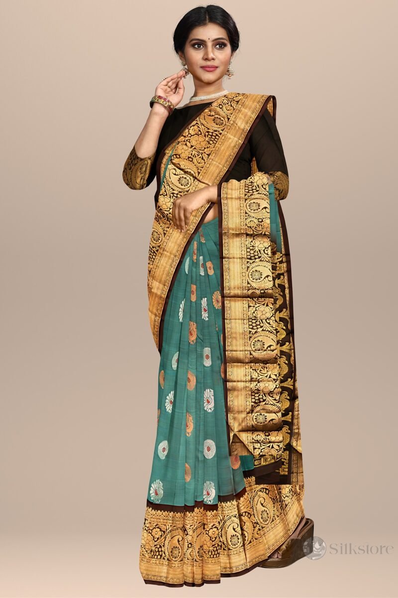 Graceful Green and Lavender Kanjivaram Handwoven Saree