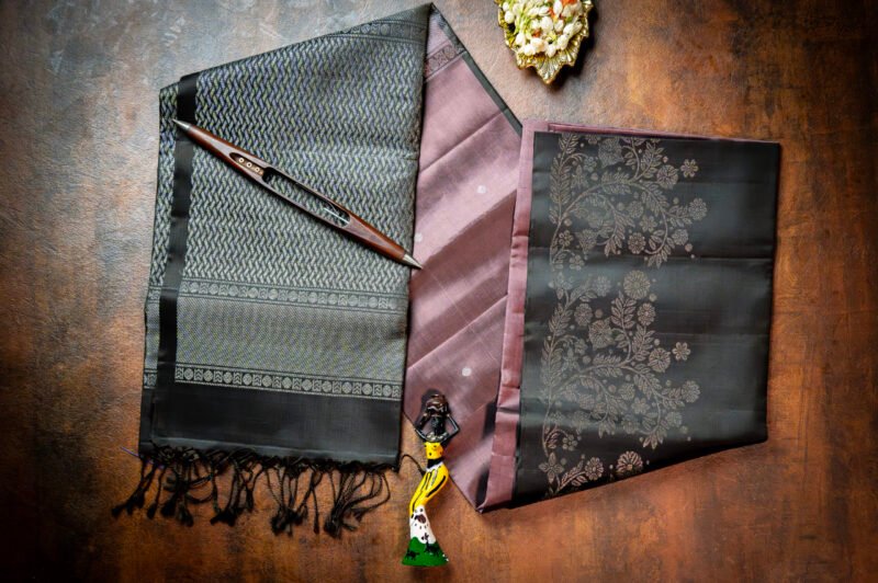 Silken Shadow Ivory Vine Ethnic Saree