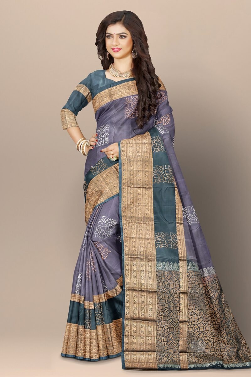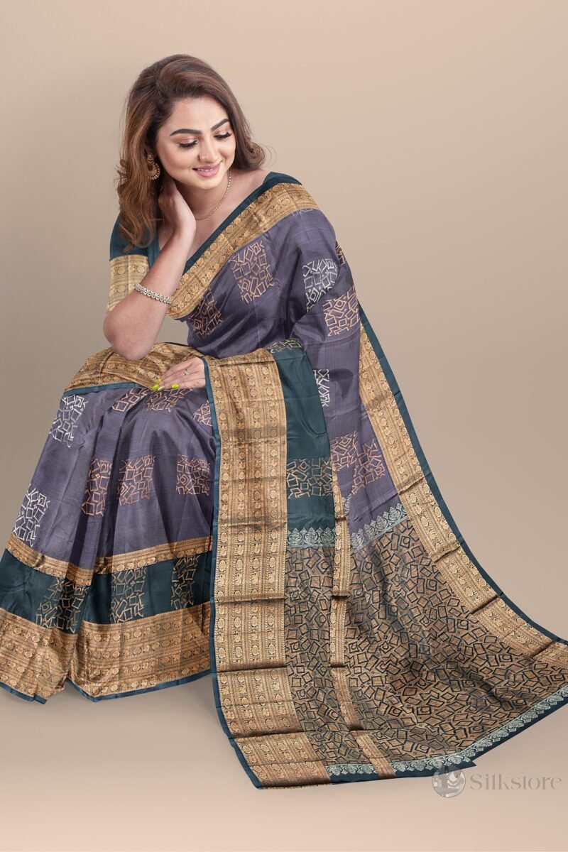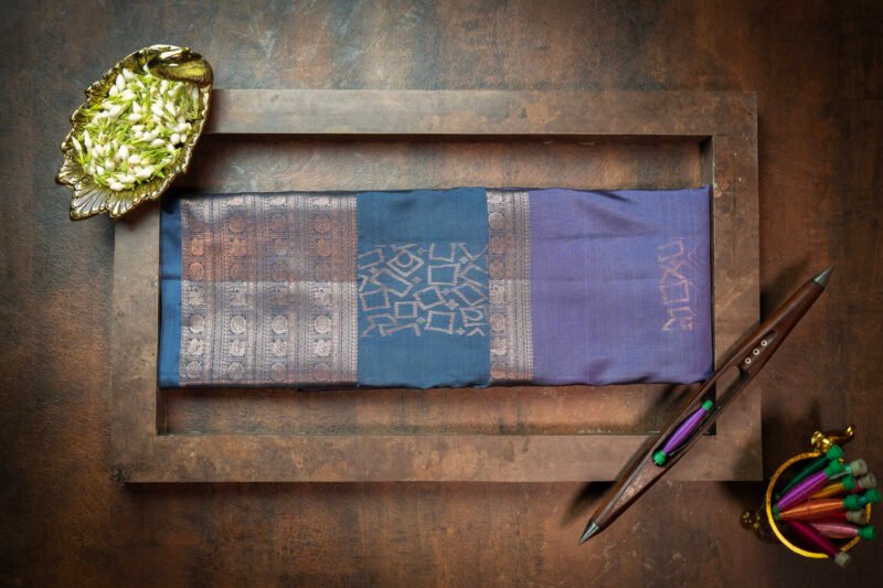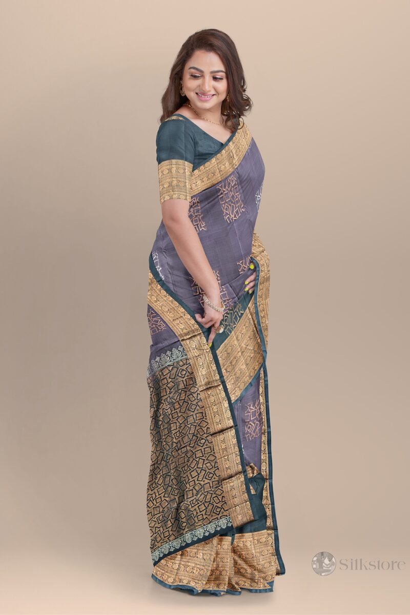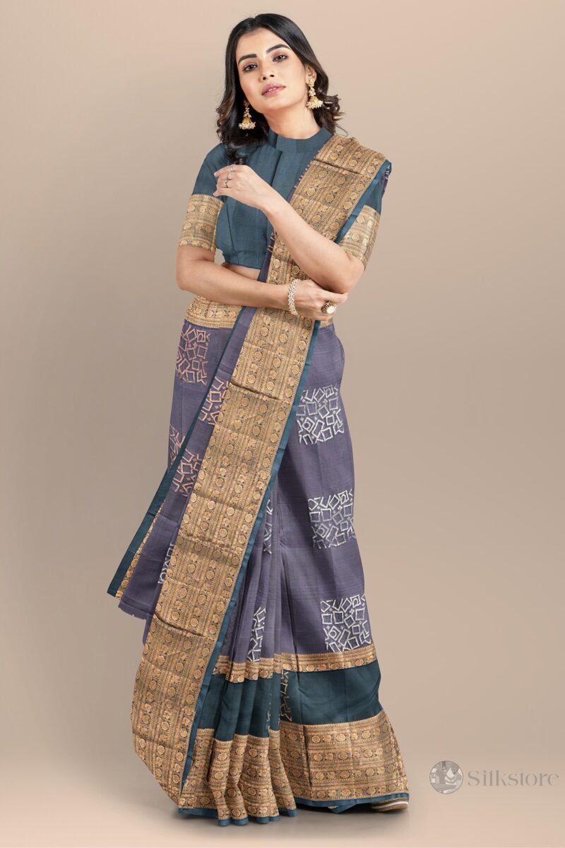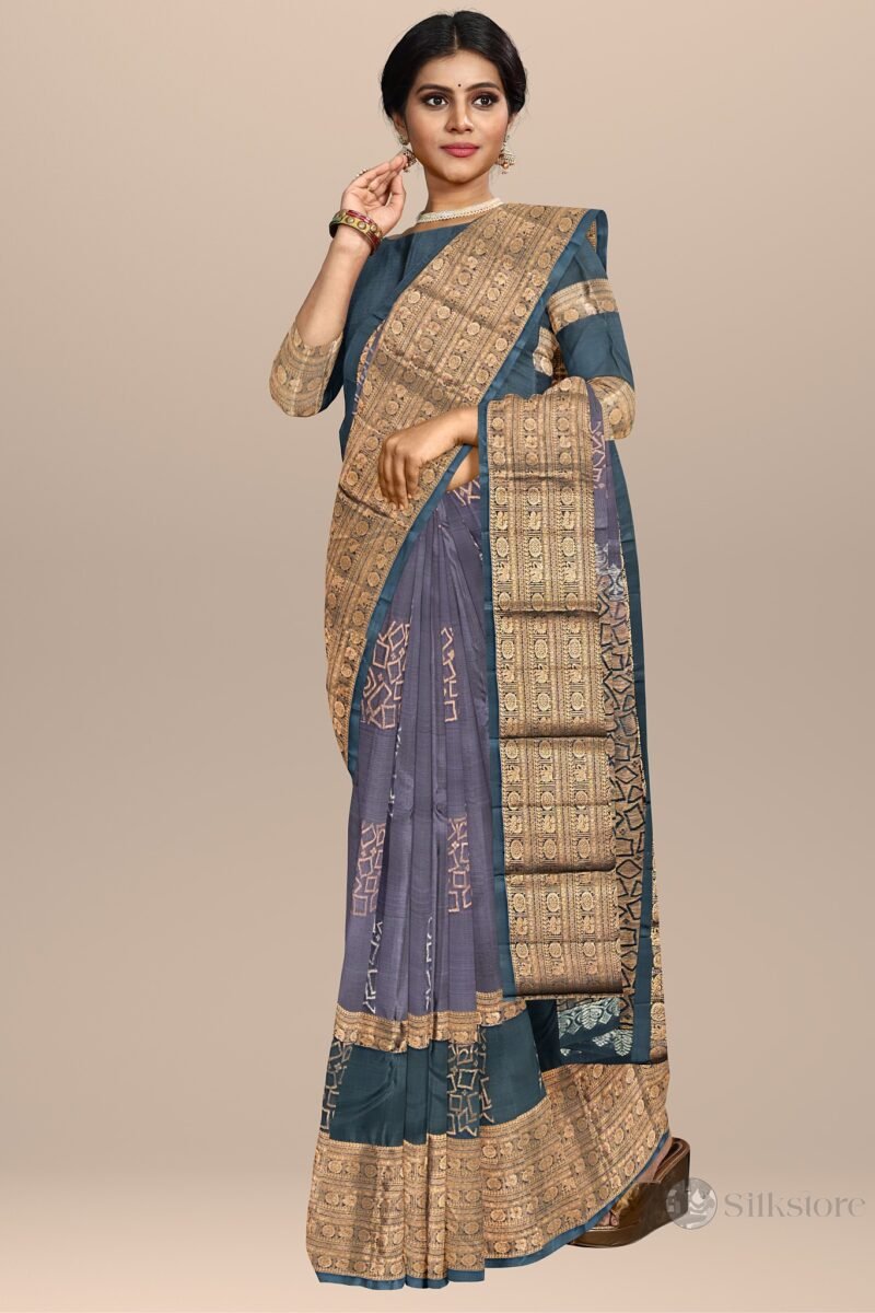 Graceful Green and Lavender Kanjivaram Handwoven Saree
